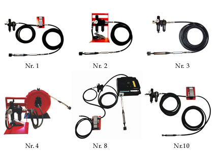 Wenn man keine Staubsaugerdüse benutzt, muss man einen vibrationsdämpfenden Handgriff zwischen Maschine und Schlauch montieren. Es gibt vier verschiedene Handgriffe und die Figur unten zeigt, welche Maschine zu den verschiedenen Handgriffen gehört.